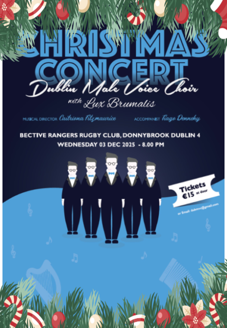 Membership of the choir is not linked to any particular area of Dublin. Rehearsals were first held in the music room at the rear of St Andrew’s Church, Westland Row. At present, we meet weekly in St. Patricks Hall at the Church of the Three Patrons, Rathgar. We are grateful to both parishes for their support and accommodation. Our rehearsals are held in a spirit of hard work and cordial conviviality amounting to a pleasant and social evening.
